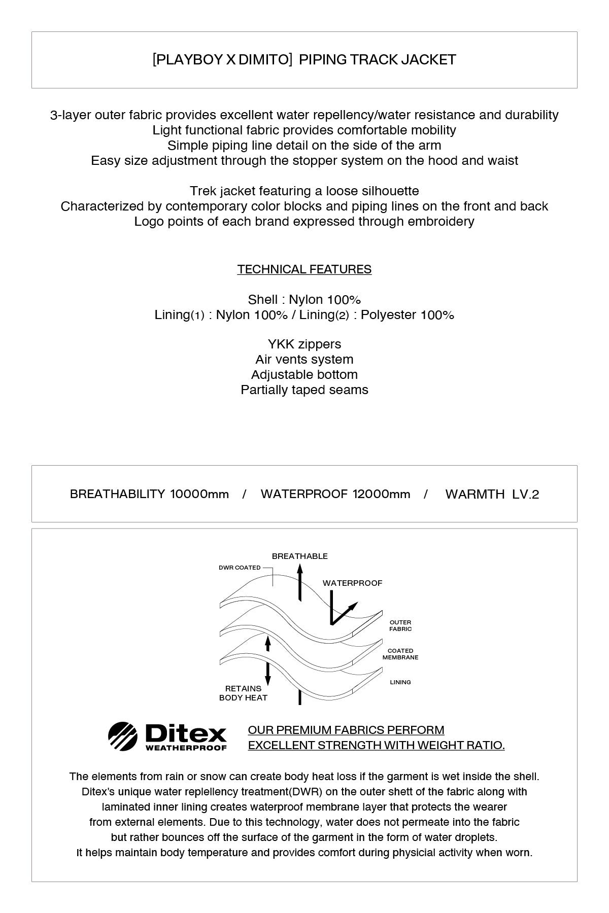 2526 디미토 플레이보이X디미토 파이핑 트랙 보드복 자켓 BLACK