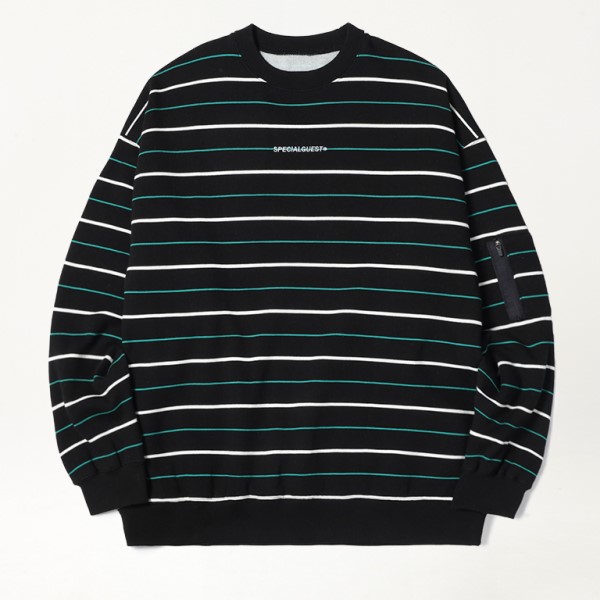 • 2526 스페셜게스트 브이투 핀스트라이프 크루넥 Black