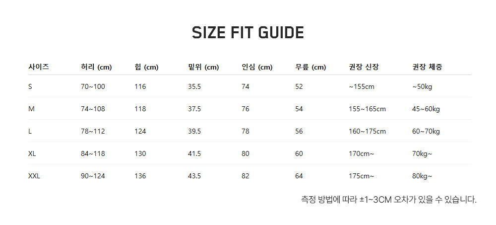 ※ 상품사이즈 치수는 재는 방법과 위치에 따라 1~3cm 오차가 있을 수 있습니다.