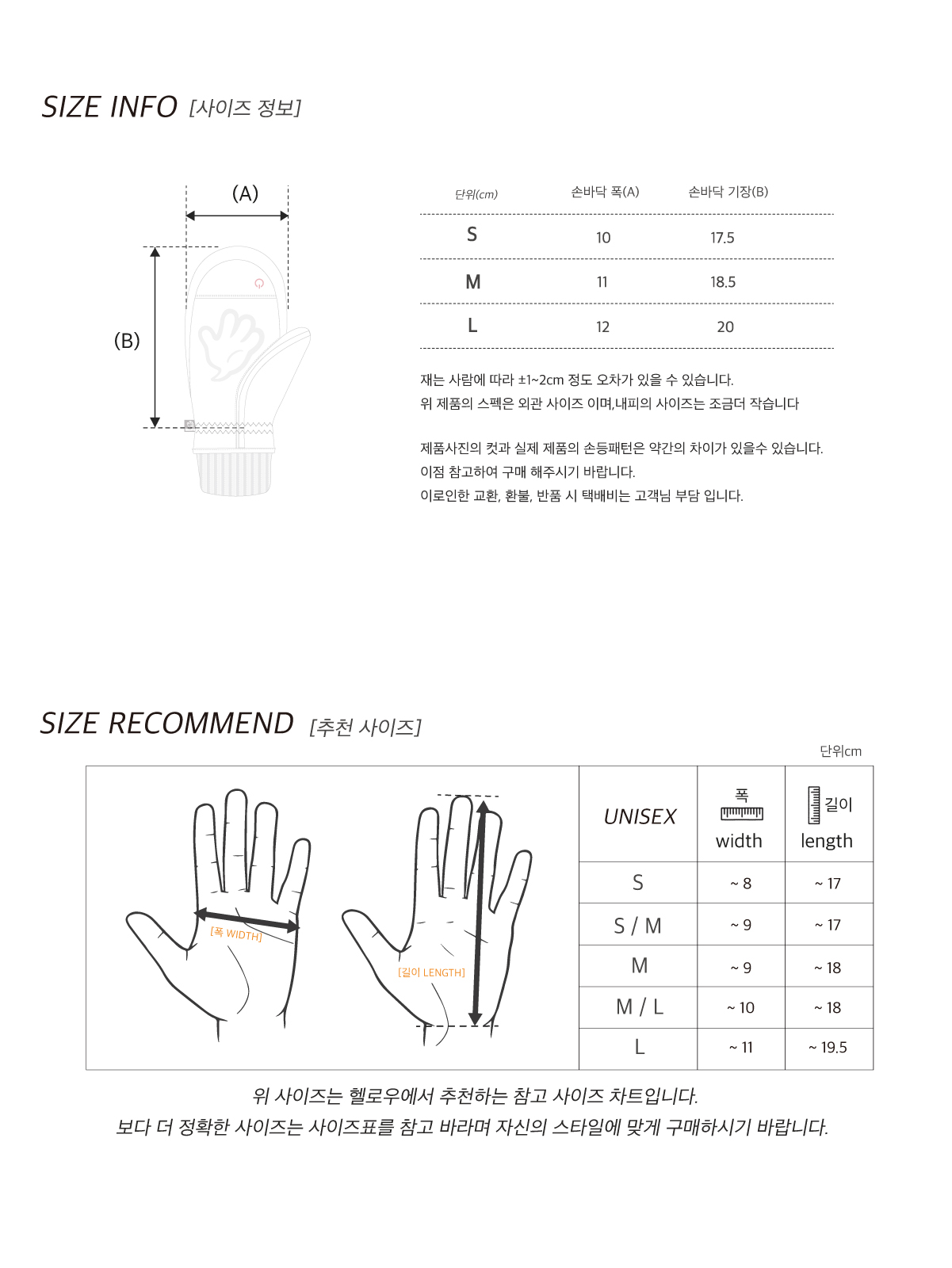 Item size chart 사이즈 기준표