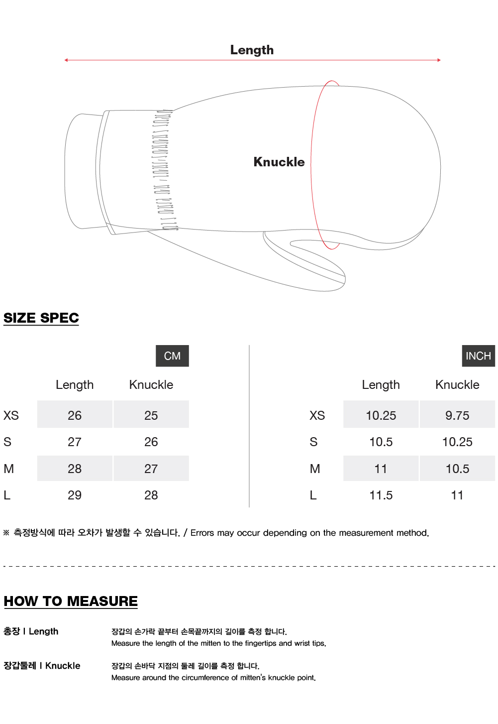 Item size chart 사이즈 기준표